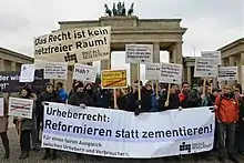 The ancillary copyright for press publishers[1] (German: Leistungsschutzrecht für Presseverleger) is a proposal incorporated in 2012 legislation proposed by the ruling coalition of the German government, led by Angela Merkel of the Christian Democratic Union (CDU), to extend publishers' copyrights. The bill was agreed by the Cabinet at the end of August 2012 and submitted to parliament on 14 November 2012. It was passed by the Bundestag on 1 March 2013 by 293 to 243, following substantial changes in the week before the vote.