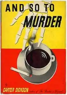 And So to Murder is a mystery novel by the American writer John Dickson Carr, who published it under the name of Carter Dickson. It is a whodunnit and features the series detective Sir Henry Merrivale and Scotland Yard Chief Inspector Humphrey Masters.