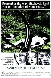 And Soon the Darkness is a 1970 British thriller film directed by Robert Fuest and starring Pamela Franklin, Michele Dotrice and Sandor Elès. The plot follows two British nurses on a cycling holiday in rural France; during their trip, one of them vanishes, and the other struggles to search for her in a rural community.