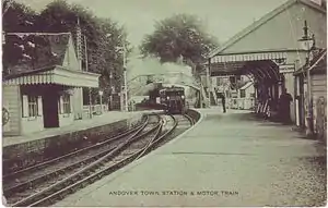 Andover Town railway station was a former railway station that served the town of Andover in the English county of Hampshire. Located on the Andover to Redbridge Line over which the Midland and South Western Junction Railway had running powers, its closure left services to the town to the Andover station, which was formerly known as Andover Junction station.
