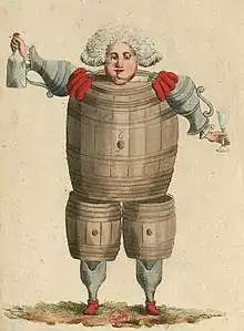 Known as Barrel Mirabeau (Mirabeau-Tonneau) because of his "rotundity" and voluminous taste for drink,[1] he was sent to the army in Malta in 1776, and spent part of his two years there in prison for insulting a religious procession. He served as a colonel, commanding the Touraine Regiment under the comte de Rochambeau in the American Revolution.[2] During the war, he was in several sea-fights with the English and witnessed the Battle of Yorktown in 1781.[3]