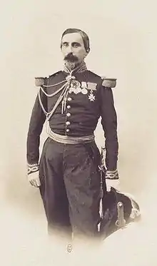 André Charles Victor Reille (23 July 1815 in Paris 19 January 1887 in Antibes) was a French general. Born into a military family, he studied at the Military School of Saint-Cyr and was a cavalry lieutenant by 1838, captain in 1841, before becoming an aide to General Oudinot, squadron leader in 1851, Lieutenant-Colonel in 1855, colonel in 1859, brigadier general in 1865, and major general in 1875. He was an aide to Napoleon III beginning in 1859 and gave Napoleon's letter of surrender to King William of Prussia at the Battle of Sedan in 1870.[1]