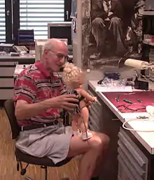 The Robota research objective of Prof Aude Billard is to engage in complex interaction with humans. In 1999, Prof Aude Billard was in need of a doll with moving legs and head. André Guignard built the mechanics, and added in 2005 moving eyes with a camera inside in the 8 cm diameter head. He helped students to build multi-degrees of liberty arms and necks.