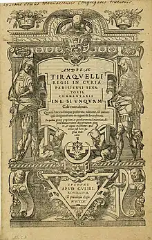 André Tiraqueau (Latin: Andreas Tiraquellus) (1488–1558) was a French jurist and politician. He is known also as a patron of François Rabelais, and the character Trinquamelle in Gargantua and Pantagruel is traditionally identified with Tiraqueau.[1][2]