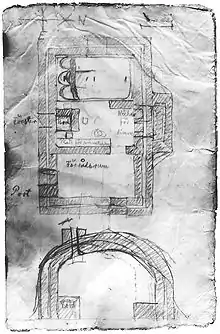 However, the floe began to break up directly under the hut on 2 October, from the stresses of pressing against Kvitøya, and they were forced to bring their stores on to the island itself, which took a couple of days. Despite these difficulties, Andrée recorded in his diary, "Morale remains good. With such comrades one should be able to manage under, I may say, any circumstances."[39][40] Strindberg's briefer diary entries indicate that on October 5 the party landed on the island. Strindberg then wrote "Snowstorm reconnaissance" on October 6 and the single word "Moving" on October 7.[41] Later scientific analysis revealed the contents of the final pages of Andrée's diary, with its last entry on October 8 reading: "It feels fine to be able to sleep here on fast land as a contrast with the drifting ice out upon the ocean where we constantly heard the cracking, grinding, and din. We shall have to gather driftwood and bones of whales and will have to do some moving around when the weather permits."[42][43] It is inferred from the end of Strindberg's diary on October 7 and Andreé's on October 8 that the three men died shortly afterwards.[44][43]