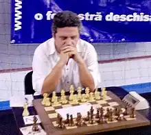 Andrei Istrățescu (born 3 December 1975) is a Romanian chess grandmaster. He competed in the FIDE World Chess Championship in 1998 and in the FIDE World Cup in 2005 and 2013. Istrățescu has played for the Romanian national team in the Chess Olympiad, the European Team Chess Championship and the Chess Balkaniads. He represented France from 2011[1] to 2017.[2] In 2004 he finished in second place behind Anatoly Karpov in the rapid knockout tournament in Aix en Provence. Subsequently, a rematch was set up in Bucharest: four classical games and four rapid games. The final score was 6-2 in favour of Karpov.[3][4]