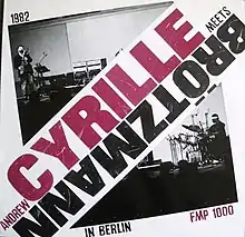 Andrew Cyrille Meets Brötzmann in Berlin is a live album by percussionist Andrew Cyrille and saxophonist Peter Brötzmann, recorded in 1982 at the Workshop Freie Musik, Academy of Arts, Berlin, and released in 1983 by FMP.[1][2]