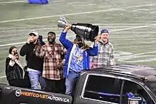 Harris helped the underdog Blue Bombers win their first Grey Cup since 1990 against the Hamilton Tiger-Cats in the 107th Grey Cup game.[29][30] He became the first ever player to win Most Valuable Player and Most Valuable Canadian in Grey Cup history after he recorded 18 carries for 134 rushing yards, five catches for 35 receiving yards, and both a rushing touchdown and a receiving touchdown.[31] Following the win of his hometown team Harris said "I'm so proud to be a Winnipegger and I can't wait to get back and share this with all them. I just wanted to prove it to my teammates and deliver for them. Everything else, whatever. I just wanted to be the best player I could be today."[29]