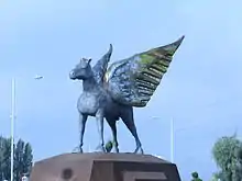 In London, he has exhibited in venues including Trafalgar Square, the foyer of Sadler's Wells Theatre, and West End cinemas. His lifesize horse sculptures, Pegasus 1 and 11 were displayed at Heathrow Airport, and his 'Icarus' sculpture hangs in Guy's Hospital. The P & O Superliner Arcadia commissioned him to sculpt his Cosmic Eggs (8 ft. tall), and his Mermaid Chandelier was exhibited at the American Visionary Art Museum in Baltimore, USA.