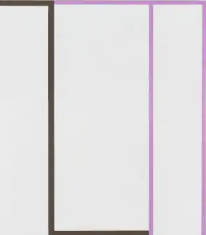 Spence has turned to linear forms that suggest contemporary signage, architectural schematics or scaffolding, and further disguise his original inspirations in much of his later work.[13][46][47] Earlier examples include Paint Run (2005)—which features a scaffold-like red line overlaid on pink and light green blocks—and Red Line (2005)—a continuous, red stroke tracing sideways flames on white.[1] Later works, such as Red Pink White 3 (2011) or Untitled Brown/Violet (2018), use spare lines and shapes to suggest layered or shifting two-dimensional planes within or on the periphery of canvasses, and continue Spence's longstanding explorations of picture, object, architecture and design.[46][48]