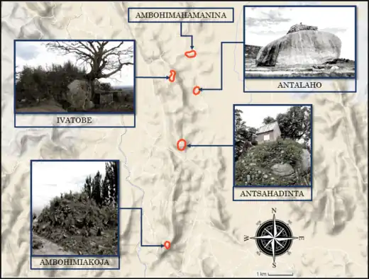 ![]() Map: Part of the ancient district of Ambodirano Imerinatsimo and its ancient heritages |