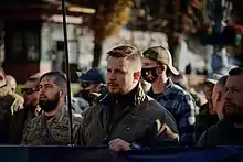 Andriy Yevheniyovych Biletsky (Ukrainian: Андрі́й Євге́нійович Біле́цький, romanized: Andríj Jevhénijovyč Biléćký, IPA: [ɐnˈd⁽ʲ⁾r⁽ʲ⁾ij jeu̯ˈɦɛn⁽ʲ⁾ijowɪdʒ biˈlɛtsʲkɪj]; born 5 August 1979[7]) is a Ukrainian far-right politician. He is the leader of political party National Corps. He was the first commander of the volunteer militia Azov Battalion,[4][1] which he founded in 2014, and a co-founder of the nationalist movement Social-National Assembly.[8][9][10][11][12][13] From 2014 until 2019 Biletsky was a People's Deputy of Ukraine.