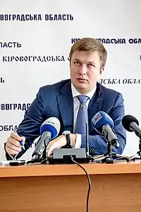 9 January 2013[8] – 2 March 2014[9]— Chairman of the Kirovograd Regional State Administration.[10] During the events of Euromaidan, he was able to resolve the conflict with the protesters in Kropyvnytskyi.[11][12]