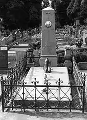 The early years of the Second Polish Republic placed onerous demands on Poland's judiciary which in turn reportedly[14] led to a high mortality rate amongst those who chose to keep working in the service of their country rather than retire. Grodyński died in 1925 and is buried at Cieszyn Municipal Cemetery (pl), but outwith the impressive family tomb erected by his father-in-law Alfons Matter. The funeral procession reflected his local, regional and national standing, with fellow judges, six priests and representatives across all levels of society, including the military, led by his close friend fr Józef Londzin.[15][16]
