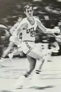 Hill won three straight National Collegiate Athletic Association (NCAA) championships as a member of the varsity UCLA Bruins under Wooden.[15] However, the 6-foot-1-inch (1.85 m) backup guard played sparingly, and took just 99 shots in those three years.[5][16][17] UCLA had many talented players during that era, and many of those who ended up being reserves arguably would have started on other teams.[18]