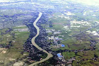 The Angat River (also called Quingua River) is a river in the Philippines located in the province of Bulacan. It flows from the Sierra Madre mountain range to Manila Bay. Three dams are located along the river namely Angat, Ipo and Bustos. The catchment or basin area of the river is 1,085 square kilometres (419 sq mi) located in the Angat Watershed Forest Reserve.[1] Angat River snakes through the municipalities of Doña Remedios Trinidad, Norzagaray, Angat, Bustos, San Rafael, Baliwag, Plaridel, Pulilan, Calumpit, Paombong, and Hagonoy.[2] The river joins the Pampanga River at Calumpit via the Bagbag River.