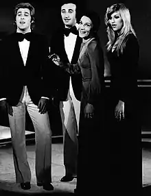 ![]() Ricchi e Poveri performing in 1973; left to right: Angelo Sotgiu, Franco Gatti, Angela Brambati, Marina Occhiena | |