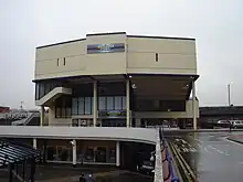 Built on a concrete raft and rising above the centre is the former Odeon cinema which opened on 8 July 1971, replacing a nearby 2,000 seat pre-war cinema. Later part of the local Hollywood Cinemas chain, in July 2013 the cinema hosted the world premiere of Alan Partridge: Alpha Papa following an "Anglia Square Not Leicester Square" campaign.[8] In 2019, the cinema closed permanently.[9]