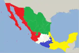 The polity of the Anglican Church of Mexico is episcopal, as is true of all other Anglican churches. The church maintains a system of geographical parishes organized into dioceses. There are 5 of these, each headed by a bishop.[3] Each diocese is divided into archdeaconries, each headed by a senior priest. The archdeaconries are further subdivided into parishes, headed by a parish priest. Several of the dioceses are named in Spanish merely for a compass direction — del Occindente, del Norte, del Sureste — which translate directly as "of the West" &c.[7] However, the Episcopal Church and other English-language Anglican Communion sources instead render these names with "Mexico" — e.g. "of Western Mexico" — so these are the forms used on the English-language Wikipedia.