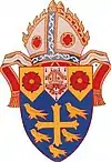 The coat of arms and badge are both official marks for the diocese. In practice, the crest is generally used more when the bishop is involved directly, and the badge when specifically referencing only the diocese.