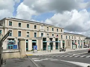 Angoulême is a railway station located in Angoulême, Charente, south-western France. The station was opened in 1852 and is located on the Paris–Bordeaux railway, Saintes-Angoulême railway and Limoges-Angoulême railway. The train services are operated by SNCF.