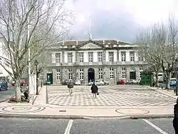 On 15 March 1830, by decree, Angra was named capital of Portugal, under the Regency of Angra when liberals supported the reign of Queen D. Maria II.[1] At that time, Miguel owing to the events leading to the Liberal Wars was King of Portugal, usurping his niece. Liberal forces of the Azores supported the young Queen and Regency of Angra was established as her government-in-exile.[1] This progressive administration lead to the 1831 administrative reforms that allowed for the first elected municipal council. Owing to their support, a regal letter dated 12 January 1837, the Crown conferred the title Mui nobre, leal e sempre constante cidade de Angra do Heroísmo (Very noble, loyal and always constant city of Angra do Heroísmo), along with receiving the title of Grand-Cross of the Tower and of the Sword.[1] There was a decision to construct a new building in 1847, and a plan was ordered executed in the city of Porto, by António José Rodrigues Fartura, a rich merchant who established himself in Angra.[1] The beginning of the project occurred on 15 June 1847. On 11 August 1849, the cornerstone for the modern municipal building, timed to coincide with the 20th anniversary of the Battle of Praia.[1] A few years later (10 March 1865) the name of the square was changed to Praça da Restauração (Restoration Square). By 11 August 1866, the new building was formally inaugurated, having cost over 40 contos de reis.[1]