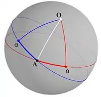 In three dimensions, angular displacement is an entity with a direction and a magnitude. The direction specifies the axis of rotation, which always exists by virtue of the Euler's rotation theorem; the magnitude specifies the rotation in radians about that axis (using the right-hand rule to determine direction). This entity is called an axis-angle.