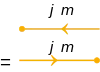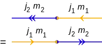 where the result for T|j, m⟩ was used, and the fact that m takes the set of values given above. There is no difference between the forward-time and reversed-time states for the outer product contraction, so here they share the same diagram, represented as one line without direction, again labelled by j only and not m:
