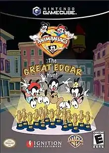 Animaniacs: The Great Edgar Hunt is an action-adventure video game, released in North America, Europe and Australia in 2005. It is based on the cartoon series Animaniacs from Warner Bros. and features the same voice actors for the main characters. The game is one of multiple Animaniacs video games. It was the first Animaniacs-related project to be released since the animated comedy film Wakko's Wish in 1999. It was released on the GameCube, PlayStation 2, and Xbox, with the latter two versions being released only in Europe, while the GameCube version was released in both Europe and North America. A North American PlayStation 2 and Xbox versions of the game were advertised but unfortunately cancelled.