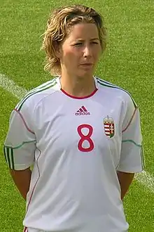 Anita Pádár (born 30 March 1979 in Karcag) is a Hungarian football midfielder, currently playing for MTK in Noi NB I.She is a member of the Hungarian national team.[1] She holds the national records in caps and scoring with 41 goals in 123 matches.