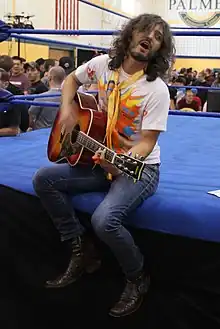 On April 26, Chikara announced the second match for Aniversario: Never Compromise, which would see Icarus challenge for the Chikara Grand Championship.[1] On March 14, 2013, Chikara's Director of Fun Wink Vavasseur announced that instead of stripping Eddie Kingston of the Chikara Grand Championship for his failure to attend an event, where he was scheduled to defend the title against Green Ant, he was going to be forcing him to put the title on the line at every subsequent event held by Chikara.[28] When the title match was announced, Kingston was scheduled to defend the title three more times, before the iPPV.[29][30] During the weekend of May 3 and 4, Kingston got past the first two of these defenses, successfully defending the title first against Green Ant and then against Mark Angelosetti.[31][32][33] On May 18, Kingston defeated Archibald Peck to ensure that he would enter Aniversario: Never Compromise as the defending Chikara Grand Champion.[6][34] In the months prior to Aniversario: Never Compromise, Kingston's popularity among Chikara fans had started to decrease,[22] while Icarus, for years referred to as one of the most hated wrestlers in Chikara,[23][35][36] began showing signs of a tecnico turn,[25] which eventually led to the implosion of his longtime F.I.S.T. stable with both Johnny Gargano and Sugar Dunkerton quitting the stable over his actions.[22][32][37] With no more allies, Icarus reached out to his childhood idol Marty Jannetty, requesting that he would be by his side at Aniversario: Never Compromise.[22][38] On May 30, Jannetty accepted Icarus' request, remembering how Icarus had shown him respect following an eight-man tag team match on April 6.[22][25][39]