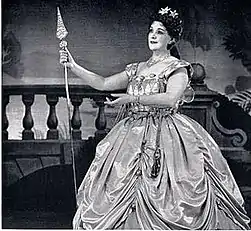 Drummond-Grant was less extrovert than some of her predecessors, and, as a young newcomer to the company, Kenneth Sandford was daunted by her "dowager austerity".[13] In general, however, she was seen as "a most likeable and kindly artist" and was something of a mother-figure to the company.[10][14] She was known to her D'Oyly Carte colleagues as "Drummie", though her husband was always particular about addressing her as "Miss Grant" when in the theatre.[15] Her D'Oyly Carte colleague, the veteran Darrell Fancourt, called her, "one of the very few people who have sung the contralto parts … not as hard, beastly women, but with a true understanding of their light and shade."[16] Of one of her last appearances, The Guardian wrote, "Lady Blanche [was] majestically portrayed last night by Ann Drummond-Grant, in whose hands tradition is always safe."[17]
