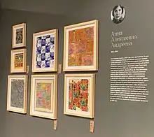 Andreeva was born in 1917 into a wealthy family of Russian merchants. When the family's home was seized by the Red Army, 9 year-old Andreeva fled to Moscow to live with distant relatives.[14] Prior to entering the Moscow Textile Institute, Andreeva attended the Rabfak School of Workers. She entered the lab of Vladimir Favorsky and Igor Grabar.