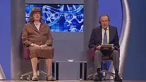 The sketch features a television presenter (Graham Chapman) interviewing paleontologist Anne Elk (John Cleese in drag). The plot of the sketch is that Miss Elk (who is very concerned about being properly credited: "A. Elk, brackets, Miss, brackets") has severe difficulty presenting her new theory about brontosauruses due to her bizarre mannerisms, which include circumlocution, repetition, and obnoxious, noisy throat-clearing. When she is finally able to state her theory, it turns out to be a very trite observation that "All brontosauruses are thin at one end, much, much thicker in the middle, and then thin again at the far end." In the original broadcast version, the sketch is taken over by other jokes from within the same episode, and spills over into the set of a previous sketch where Miss Elk concludes the episode with a second theory about Marcel Proust.[1]