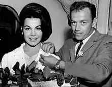 Funicello's best friend was actress and singer Shelley Fabares, whom she had met in a catechism class when they were teens. Fabares was a bridesmaid at Funicello's first wedding. Funicello was also very close to fellow Mouseketeers Lonnie Burr (her first boyfriend), Sharon Baird, Doreen Tracey, Cheryl Holdridge, Disney co-star Tommy Kirk and beach-movie co-star Frankie Avalon. She dated Canadian singer/songwriter Paul Anka and he wrote his hit song "Puppy Love" about her.[25]