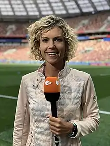 Zimmermann has worked for ZDF since 15 September 2014, replacing Jessy Wellmer as sports reporter. In 2015 she was awarded the German Sports Journalist Award for Best Newcomer.[1][2]