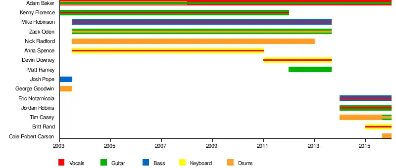 | Past members | Mike Robinson Kenny Florence Zack Oden Nick Radford Anna Spence Devin Downey Josh Pope George Goodwin |