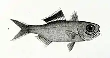 The splitfin flashlightfish or two-fin flashlightfish (Anomalops katoptron) is a species of beryciform fish in the family Anomalopidae. It is found in warm waters in the central and western Pacific Ocean near shallow reefs 200–400 m (660–1,300 ft) in depth.[1] It can grow to a length of 35 cm (14 in) TL. It is the only known member of its genus.[2]