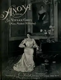 "Anona" is a popular song supposedly written by Vivian Grey (pseudonym for Mabel McKinley, niece of William McKinley[1]), but in fact composed by Robert Keiser King[2] in 1903, both as an intermezzo[3] and a vocal number. Popular in its day, it was recorded a number of times.