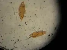 Microsporidia infecting the aquatic stages of insects, a group that includes mosquitoes and black flies, and copepods appear to form a distinct clade from those infecting terrestrial insects and fish. Two distinct life cycles are found in this group. In the first type, the parasite is transmitted by the oral route and is relatively species nonspecific. In the second, while again the oral route is the usual route of infection, the parasite is ingested within an already infected intermediate host. Infection of the insect larval form is frequently tissue-specific, and commonly involves the fat body. Vertical (transovarial) transmission is also known to occur.
