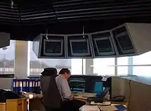 The systems are controlled by a fully automated computer system, located at the control and maintenance center. The automatic train control (ATC) consists of three subsystems: automatic train protection (ATP), automatic train operation (ATO) and automatic train supervision (ATS). The ATP is responsible for managing the trains' speed, ensuring that doors are closed before departure and that switches are correctly set. The system uses fixed block signaling, except around stations, where moving block signaling is used.[8][5] The system has been designed and built by Union Switch & Signal.[9]