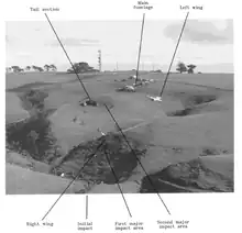 ![]() The wreckage of the aircraft the day after the crash | |