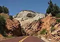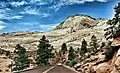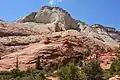 Ant Hill is a 6,641-foot (2,024 m) summit located in Zion National Park, in Washington County of southwest Utah, United States. It is composed of white Navajo Sandstone, and rises 1,400 feet (430 meters) above the Zion – Mount Carmel Highway. Ant Hill is situated 1.65 mi (2.66 km) east-northeast of The East Temple, and 2.4 mi (3.9 km) west-northwest of Checkerboard Mesa. Precipitation runoff from this mountain drains into tributaries of the Virgin River. Despite its benign name, an ascent of this mountain is a dangerous and exposed climb.