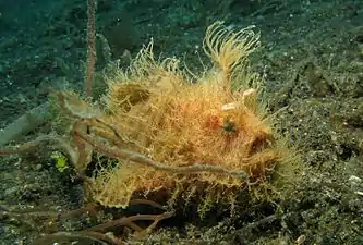 Antennarius is a genus of 11[1] species of fish in the family Antennariidae. These fish spend most of their lives on the bottom in relatively shallow water between 20 and 100 m.[2] They can be found worldwide in tropical and subtropical waters. They are well-camouflaged ambush predators that wait for prey fish to pass by. They have "lures" which they move to attract the prey. They have little economic value other than a minor role in the aquarium trade.[3] Commerson's frogfish was the first species in this genus to be described, in 1798.