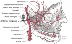 ![]() Branches of maxillary artery (anterior tympanic artery at upper left) | |