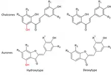 Likewise hydroxychalcones, deoxychalcones can be converted to the corresponding aurones, catalyzed by the enzyme aurone synthase (AUS).[6]