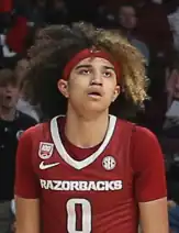 Black entered his freshman season at Arkansas as a starter at guard.[6] He also entered the season as a potential first-round selection in the 2023 NBA draft.[7] Black averaged 22 points over three games during the 2022 Maui Invitational Tournament and was named the Southeastern Conference (SEC) Freshman of the Week.[8] He was named to the SEC All-Freshman team at the end of the regular season.[9] Black averaged 12.7 points, 5.1 rebounds, 3.9 assists, and 2.1 steals per game on the year. After the season, he announced that he would forgo the remainder of his college eligibility and enter the 2023 NBA draft.[10]