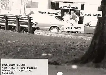 In December 1985, Casso was approached by caporegime Frank DeCicco regarding a planned coup in the Gambino crime family.[14] Gambino captain John Gotti, whose crew had worked with Casso in multiple drug deals, and other captains, were planning to kill crime boss, Paul Castellano. Gotti and DeCicco were looking for support among the other Four Families affected by the Mafia Commission Trial.[15] According to Sammy Gravano, another of Gotti's co-conspirators, DeCicco returned from the meeting saying that Casso had offered the conspirators his unconditional support.[16] According to Casso, DeCicco alleged during their meeting that Castellano's carelessness in allowing his own house to be bugged was reason enough to kill him. Casso later told Carlo, however, that he tried to talk DeCicco out of killing a boss without first asking for The Commission's permission. Otherwise, he said, killing Castellano would be a cardinal violation of the rules and all the participants would have to be murdered by the other Four Families.[14] Castellano's murder went ahead anyway on December 16, 1985.[15] Casso would later denounce Gotti's actions to Carlo as "the beginning of the end of our thing."[14]