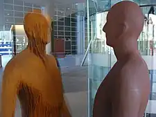 In 2007, Gormley's Event Horizon, consisting of 31 life-sized and anatomically correct casts of his body, four in cast iron and 27 in fiberglass, was installed on top of prominent buildings along London's South Bank, and installed in locations around New York City's Madison Square in 2010. Gormley said of the New York site, "Within the condensed environment of Manhattan's topography, the level of tension between the palpable, the perceivable, and the imaginable is heightened because of the density and scale of the buildings" and that in this context, the project should "activate the skyline in order to encourage people to look around. In this process of looking and finding, or looking and seeking, one perhaps re-assess one's own position in the world and becomes aware of one's status of embedment."[13] Critic Howard Halle said that "Using distance and attendant shifts of scale within the very fabric of the city, [Event Horizon] creates a metaphor for urban life and all the contradictory associations – alienation, ambition, anonymity, fame – it entails."[13]