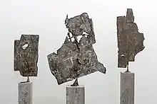 Morphic Fields was an exhibition of bronze and limestone pieces inspired by the scientist Rupert Sheldrake's pseudoscientific theory of morphic resonance: "a process whereby self-organizing systems inherit a memory from previous similar systems."[4] The sculptures are created from found materials and "through [James's] process of converting ... waste into bronze they morph into something very beautiful and precious."[5]